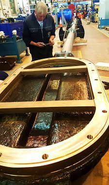 Over recent years the valve had started to leak, and was progressively getting worse. The original valves had 9″ square teak shafts, were over 54ft long and sandwiched between two 1.5″ thick wrought iron plates. These along with the cast iron valve gates were calculated to weigh just over 9 tonnes each. The Blackhall valvologists were called in to inspect and diagnose the problem and conduct feasibility studies to provide the best possible refurbishment options.